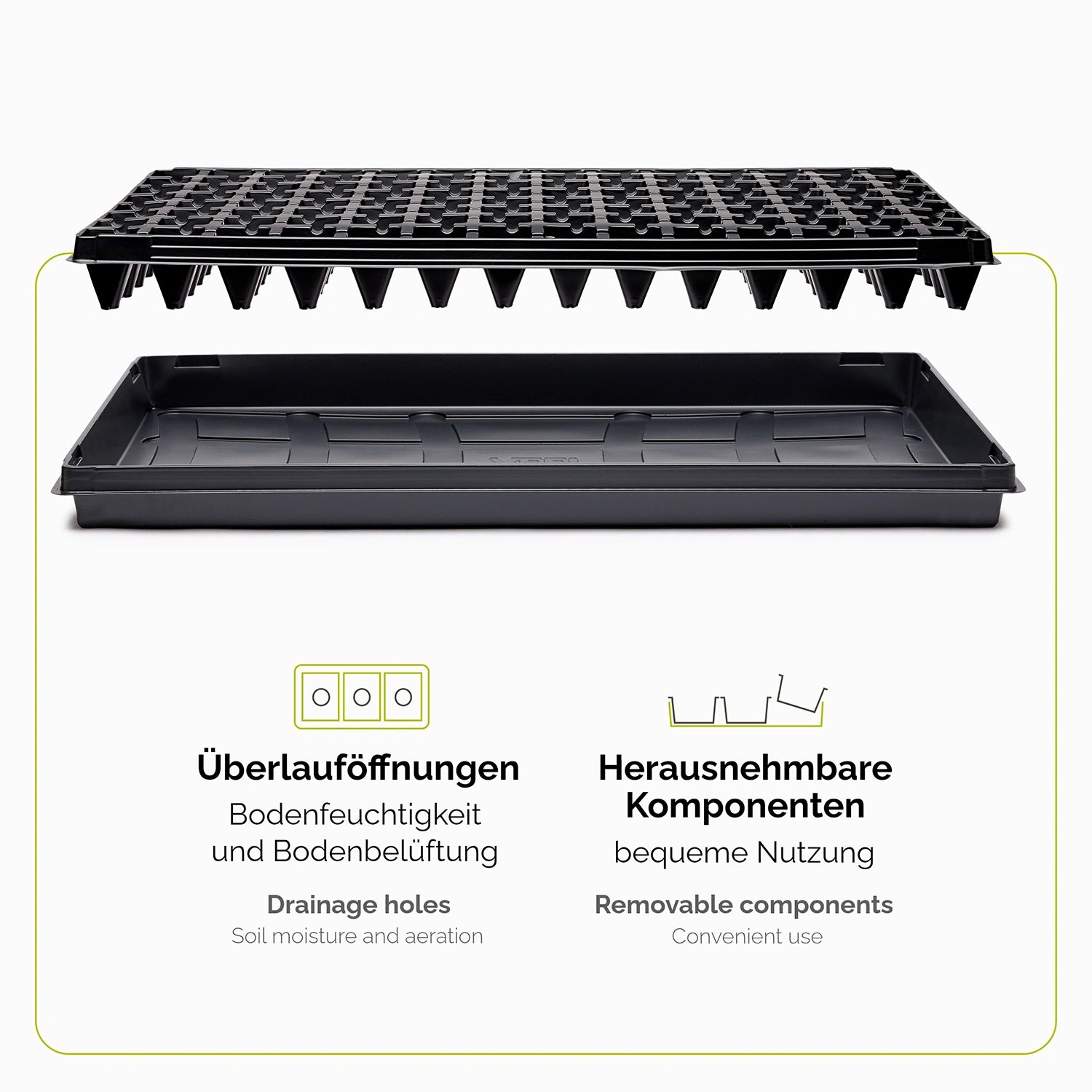 Garronda Anzuchtplatte – Perfekte Lösung für die Pflanzenanzucht Die Garronda Anzuchtplatte, Teil des Anzuchtsets, ist eine vielseitige und praktische Lösung für die Aufzucht von Pflanzen – ideal sowohl für den heimischen Garten als auch für Mini Gewächshäuser. Diese robuste, wasserdichte und leicht zu reinigende Kunststoffbox eignet sich perfekt für den Innen- und Außenbereich und kann in Gartenhäusern, Balkonen und Terrassen verwendet werden. Mit ihrer durchdachten Konstruktion dient die Anzuchtplatte als effiziente Anzuchtschale, die für die Aussaat von Blumen, Salat, Obst, grüne Tomaten, Gemüse und Kräuter optimiert ist. Dank der speziellen Multitopfplatten-Struktur bietet sie ideale Bedingungen für die Keimung und das gesunde Wachstum von Pflanzen. Die Garronda Keimschale unterstützt den gesamten Wachstumsprozess von der Aussaat bis zur Reife und erleichtert die Pflege junger Pflanzen. Ein besonderer Vorteil dieser Anzuchtplatte mit Untersetzer ist die effiziente Bewässerung – die Tropfschale sorgt dafür, dass überschüssiges Wasser aufgefangen wird, sodass keine Staunässe entsteht. Dadurch wird sie zur idealen Wasserwanne für Pflanzen und bietet eine sichere und saubere Lösung für die Pflanzenpflege. Die Anzuchtschalen sind nicht nur für Hobbygärtner, sondern auch für professionelle Züchter geeignet. Sie können in Gewächshäusern & Ausrüstung zur Anzucht eingesetzt werden und sind eine praktische Ergänzung für jedes Anzucht Gewächshaus. Die robuste Struktur macht sie außerdem perfekt als Aussaatschale, Anzuchtkasten oder Aufzucht-Pflanzenbehälter. Egal, ob als Keimschale, Multitopfplatte oder Pflanzenschale – die Garronda Anzuchtplatte ist eine langlebige, stabile und vielseitig einsetzbare Lösung für die Pflanzenanzucht. Die einfache Handhabung macht sie zum perfekten Begleiter für alle, die ihr eigenes Gemüse, Kräuter oder Blumen aufziehen möchten – sowohl drinnen als auch draußen.
