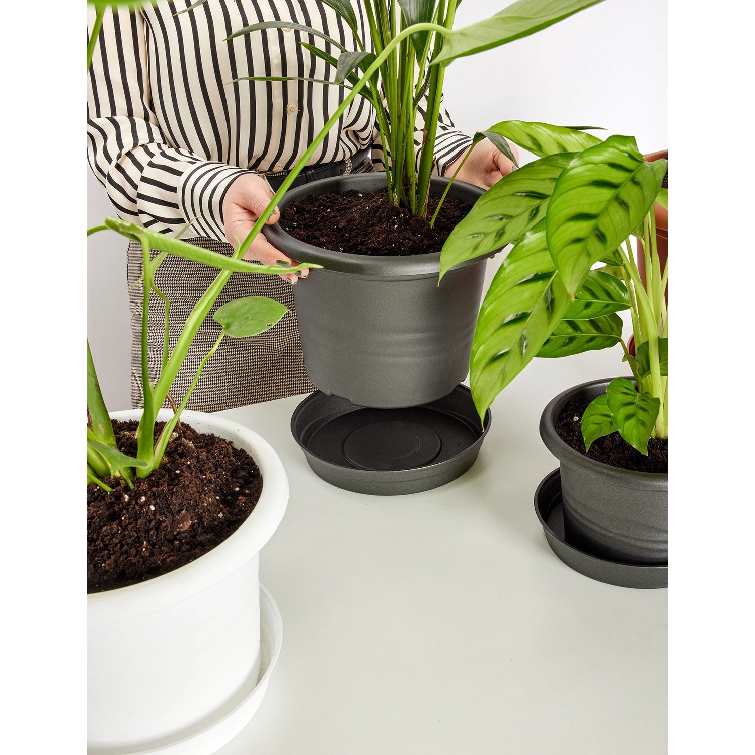 - Komfort. Der Blumentopf Untersetzer ist aus Kunststoff hergestellt. Das macht ihn leicht und langlebig. Unsere Untersetzer können leicht mit dem passenden Blumentopf kombiniert werden, um ein ästhetisch perfektes Set zu schaffen.