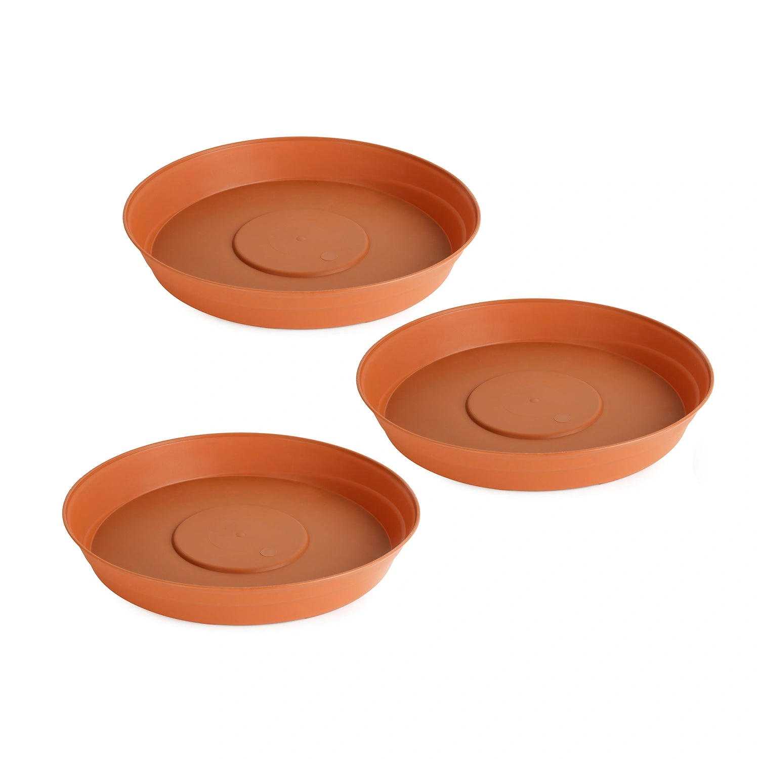 Untersetzer rund für Blumentöpfe. Zur Auswahl: 1 Stück oder Dreier Pack. Weshalb lohnt es sich, unsere Untersetzer zu Wählen? Ganz einfach: Sie schützen ideal die Blattoberfläche unter dem Blumentopf. Der Untersetzer verhindert direkten Kontakt des Blumentopfs mit Möbeln, Boden, Parkett oder Fußbodenpaneelen. Dies verhindert die Entstehung von Flecken, Kratzern oder Verschmutzungen an der Oberfläche. Sie schützen auch vor Feuchtigkeitansammlung. Mit dem Topfuntersetzer kann überschüssiges Wasser vom Boden abgeleitet werden.Dadurch wird verhindert, dass die Pflanze mit Wasser übergossen wird, was zu Krankheiten und zum Verfaulen der Pflanzenwurzeln führen kann. Sie helfen auch Ordnung zu halten. Unser Kunststoff-Untersetzer ist leicht zu reinigen, sodass Sie immer ein sauberes und ästhetisch angenehmes Pflanzenumfeld genießen können. Erhältliche Untersetzer-Größen: Durchmesser: 16 cm, Höhe: 3 cm Durchmesser: 18 cm, Höhe: 3,5 cm Durchmesser: 20 cm, Höhe: 3,5 cm Durchmesser: 24 cm, Höhe: 4 cm Durchmesser: 28 cm, Höhe: 4,5 cm Durchmesser: 34 cm, Höhe: 5 cm Materialzusammensetzung: 100% Kunststoff Die angezeigten Farbtöne können leicht je nach Bildschirmeinstellungen von den realen abweichen.