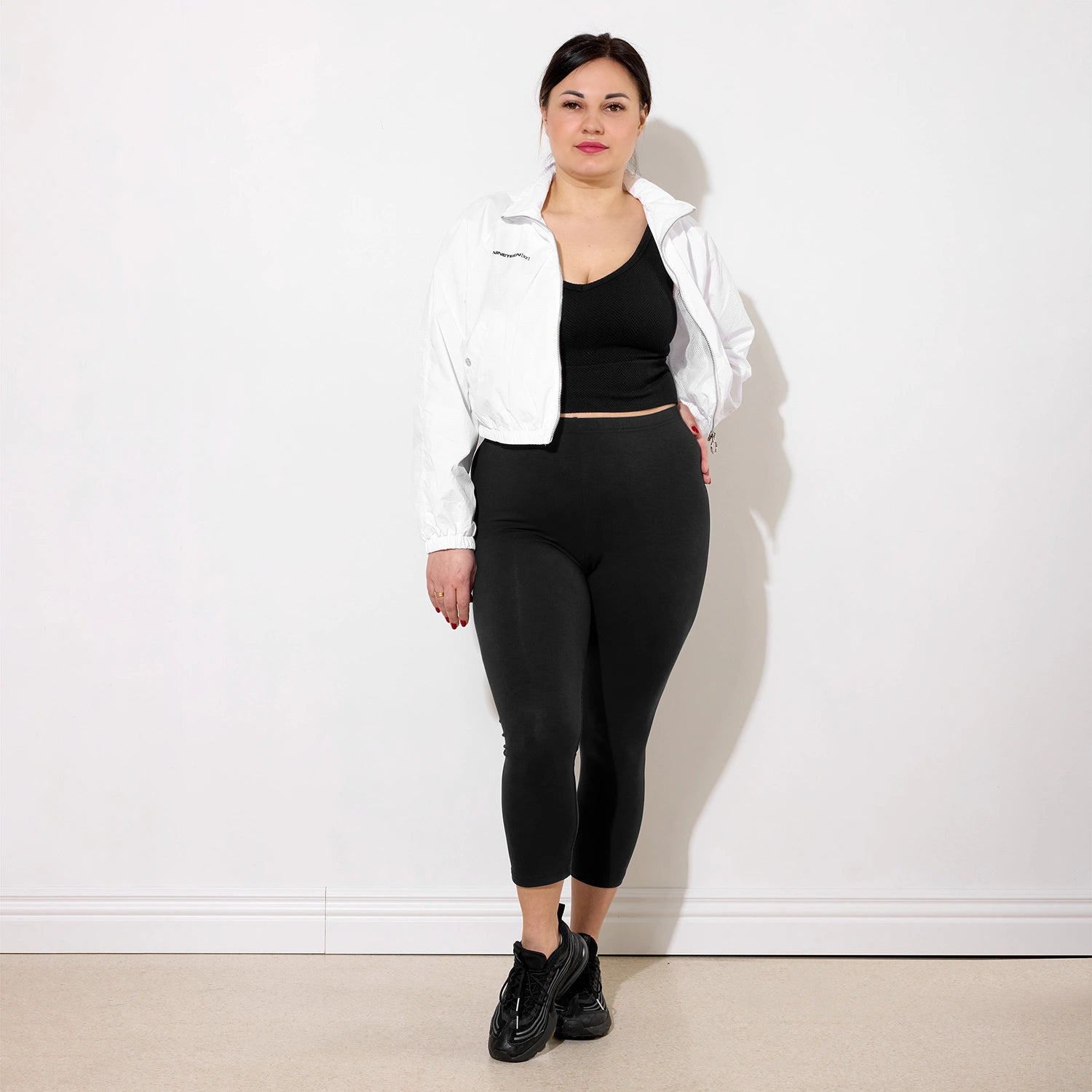 - Große Größen Damen Leggings; Länge 3/4; Capri; Hoher Bund; In der Taille mit breitem, bequemem Gummi