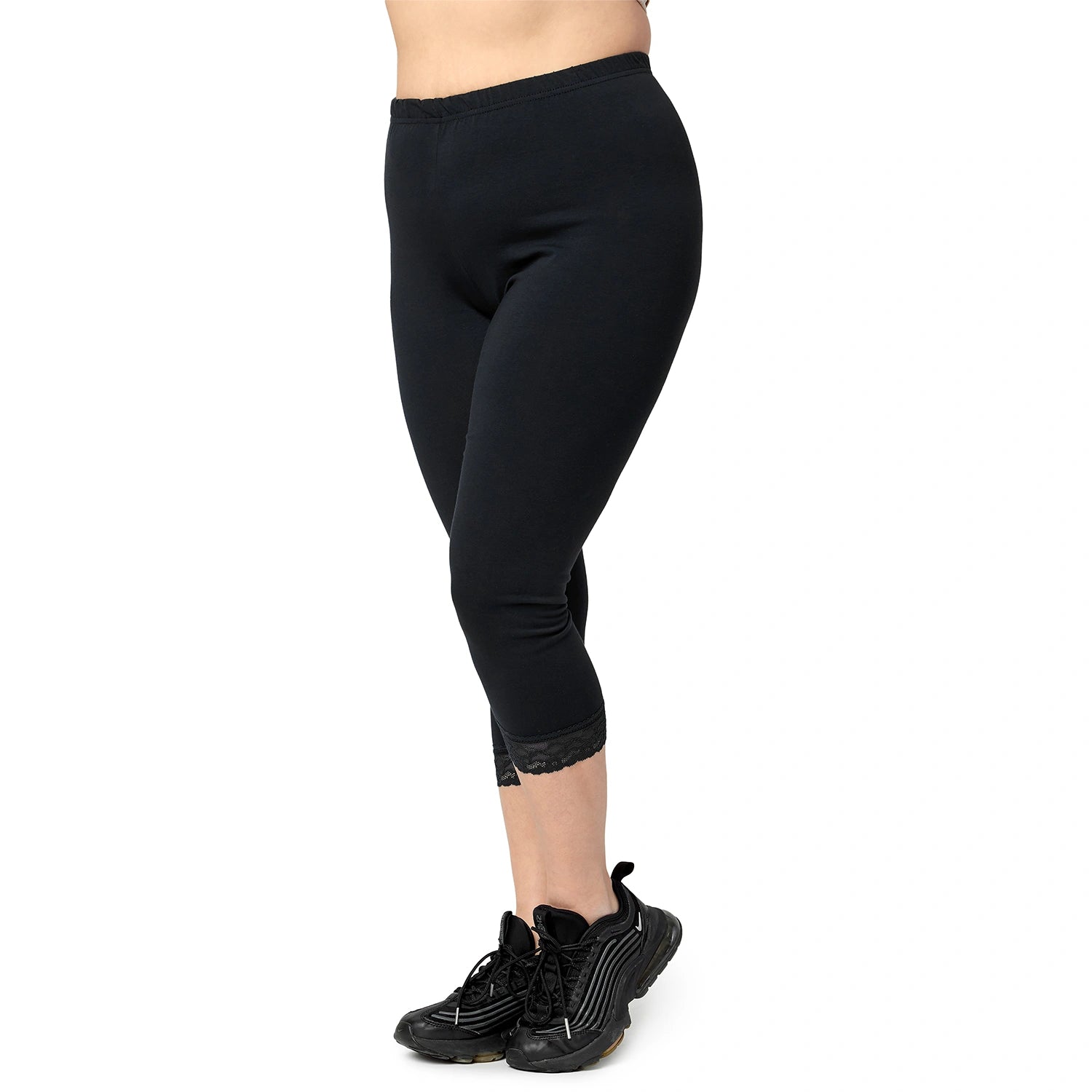 - Große Größen Damen leggings; Capri Leggings; Caprihose; Hosenbein wurde mit eleganter Spitze verarbeitet