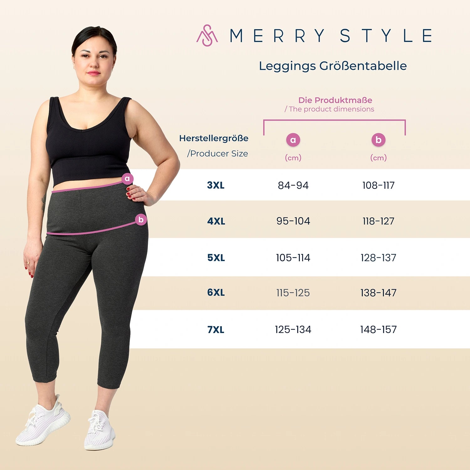 Große Größen Damen Caprileggings mit Spitze verziert. Plus Size Leggings wurden fast gänzlich aus hochwertiger, weicher Baumwolle hergestellt. Baumwolle ist eines der wenigen Materialien, die ideal sind zur Herstellung von Unterwäsche und Kleidung mit direktem Kontakt mit der Haut. Sie ist weich, löst keine Allergien aus und lässt die haut vor allem atmen. Sie ist ideal für Personen mit empfindlicher Haut. Die Erzeugnisse der Marke Merry Style bieten einen raffinierten Stil, hohe Qualität und großen Komfort. Das hochwertige Material geht Hand in Hand mit einer präzisen und soliden Verarbeitung und einem modischen Muster. Die eingeblendeten Farben können sich von den eigentlichen Farben unterscheiden, je nach den Parametern Ihres Monitors. Materialzusammensetzung: 94% Baumwolle, 6% Elasthan Dunkelmelange: 47% Baumwolle, 46% Polyester,7% Elasthan