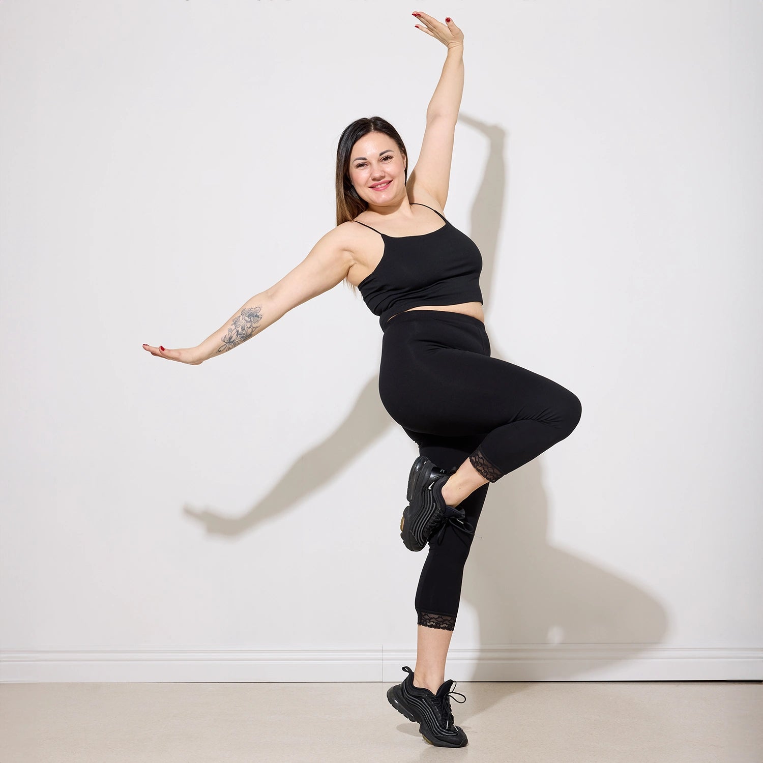 - In der EU hergestellt; Damen Leggings; Capri Leggings; Capri Leggings; Hosenbeine mit eleganter Spitze verziert