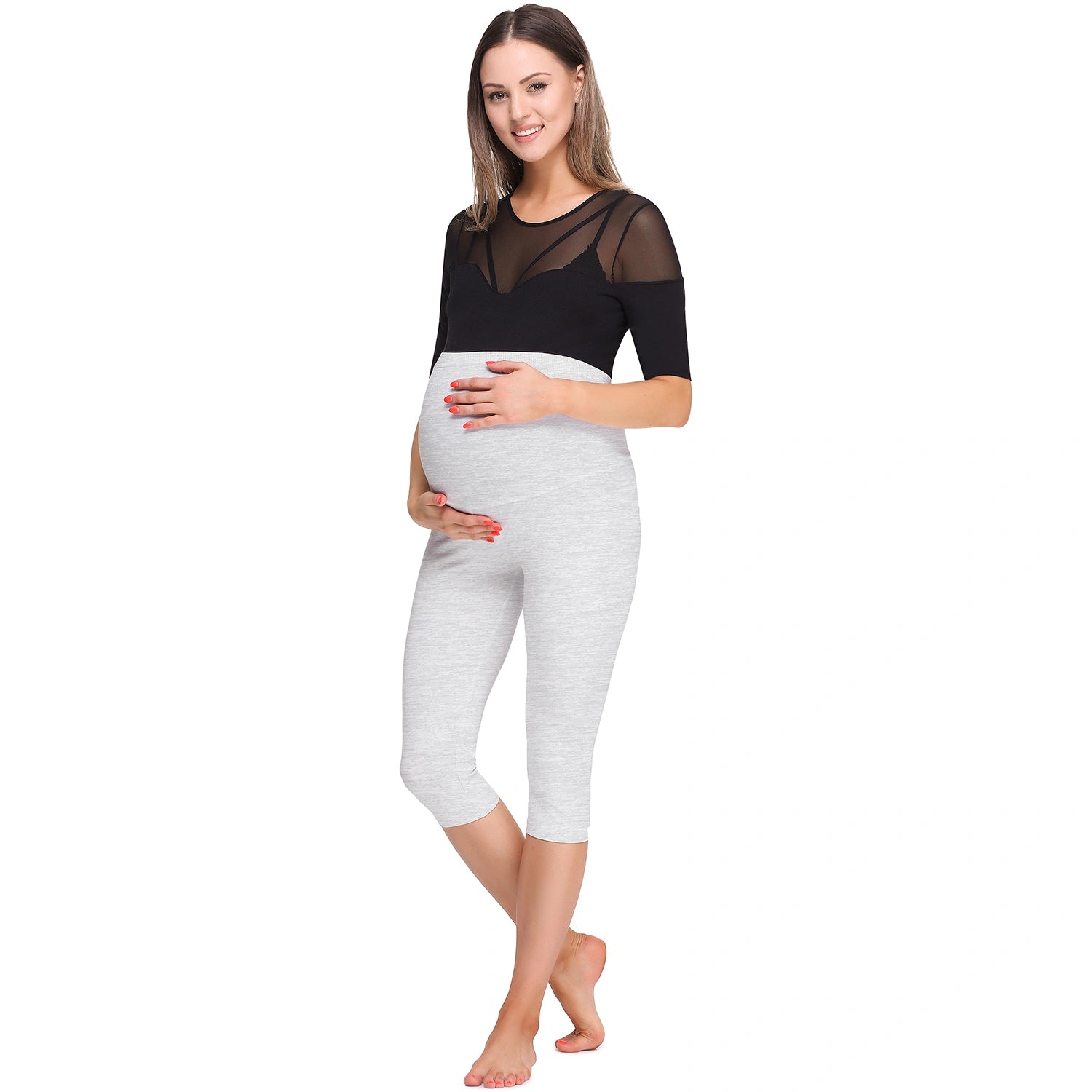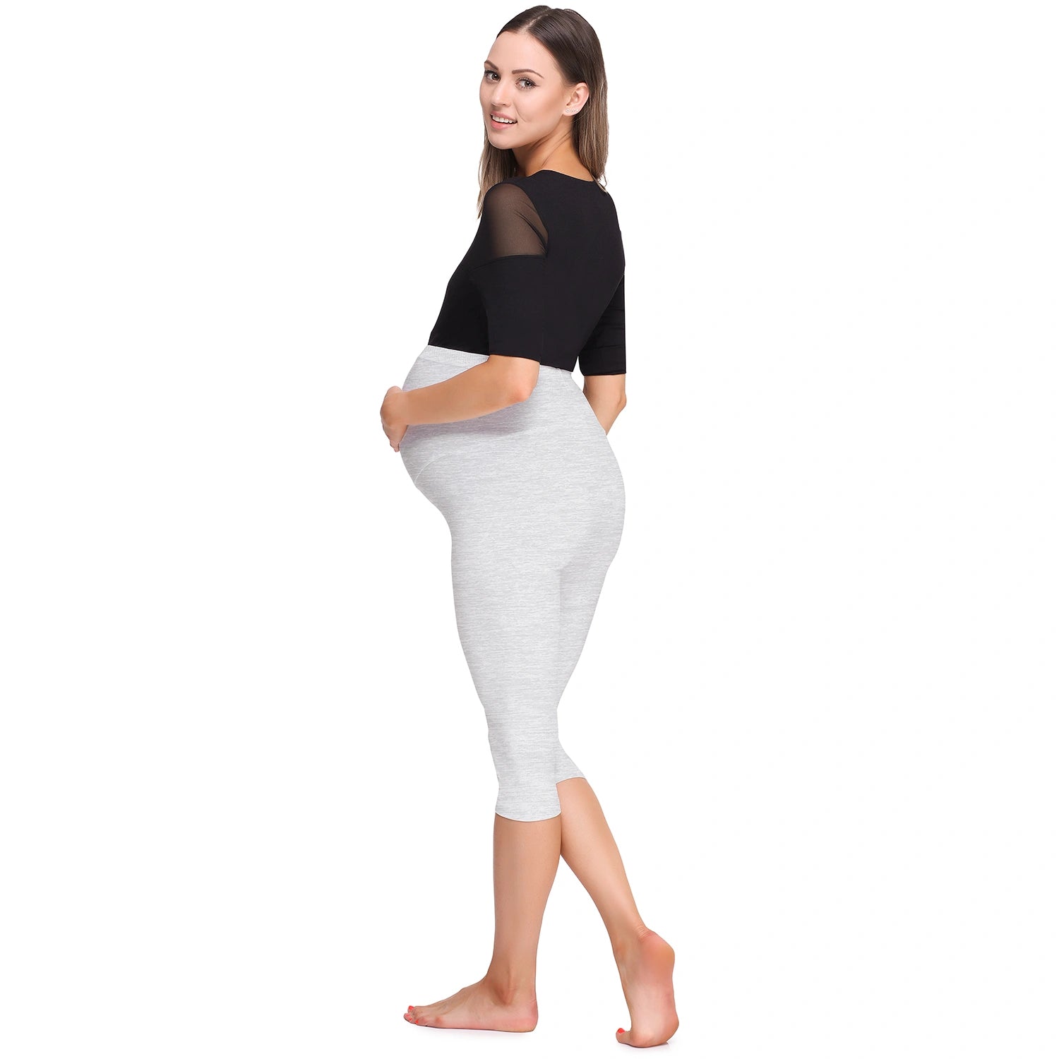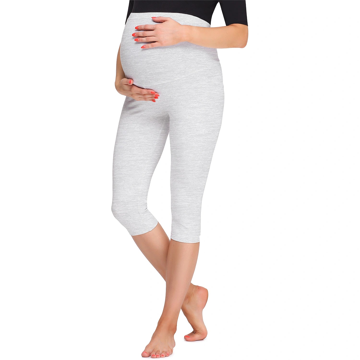 - Umstands Leggings; 3/4 Länge; Umstandsleggings mit Capri Schnitt; Hoher Bund; Die Leggings wurden so geschnitten, dass sie sich dem wachsenden Babybauch gut anpassen