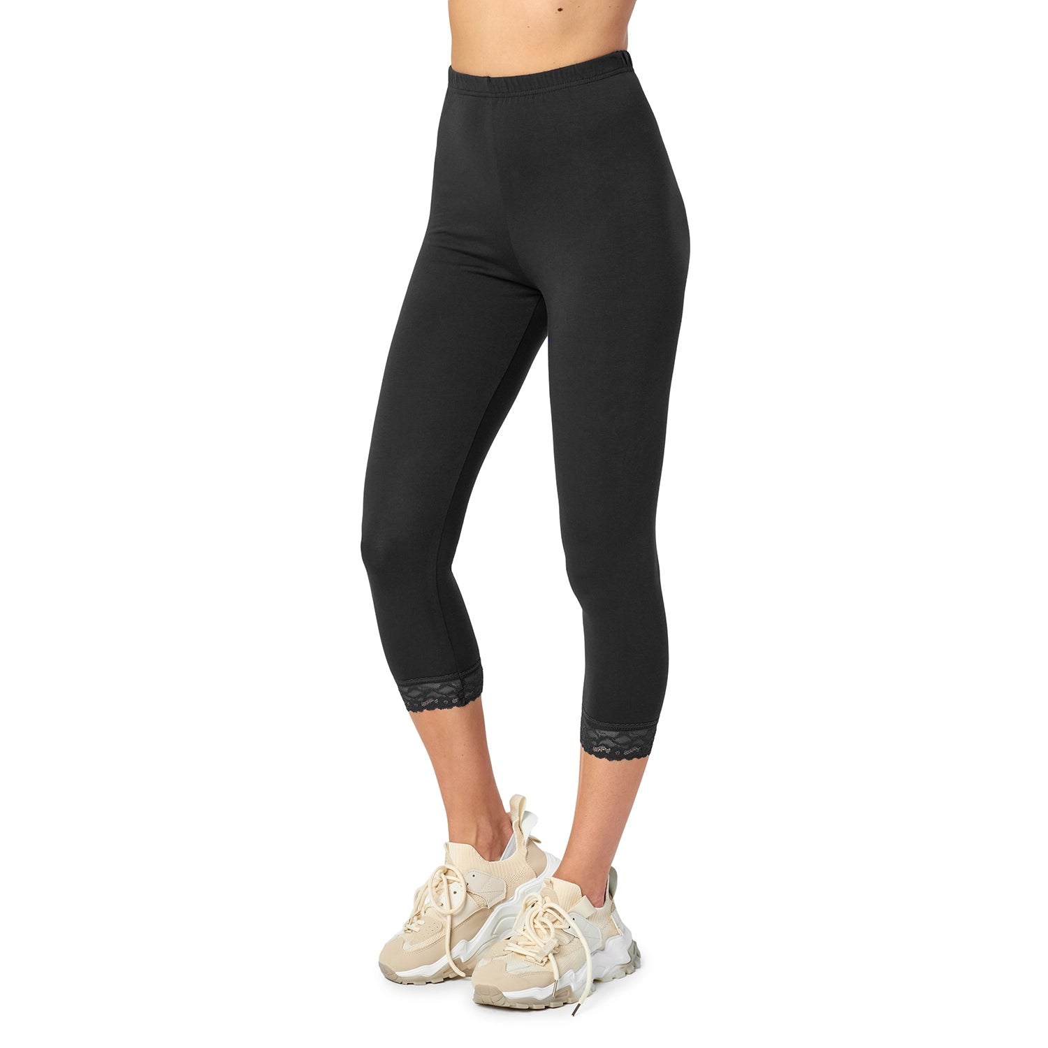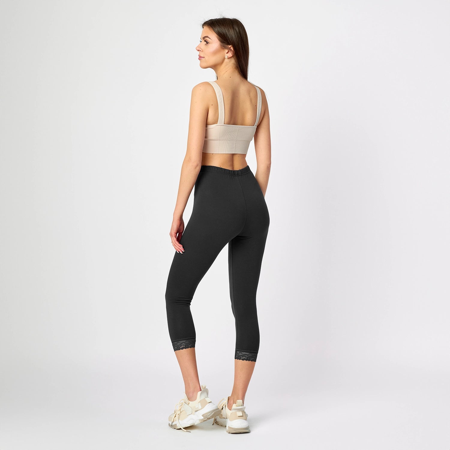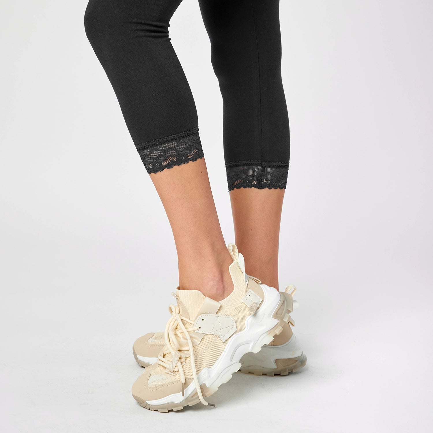 - Damen leggings; 3/4 Länge; Caprihose; Hosenbein wurde mit eleganter Spitze verarbeitet