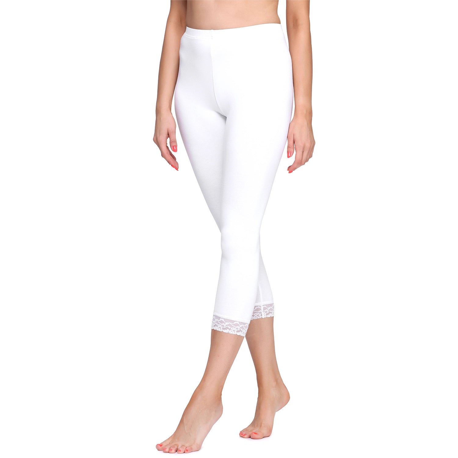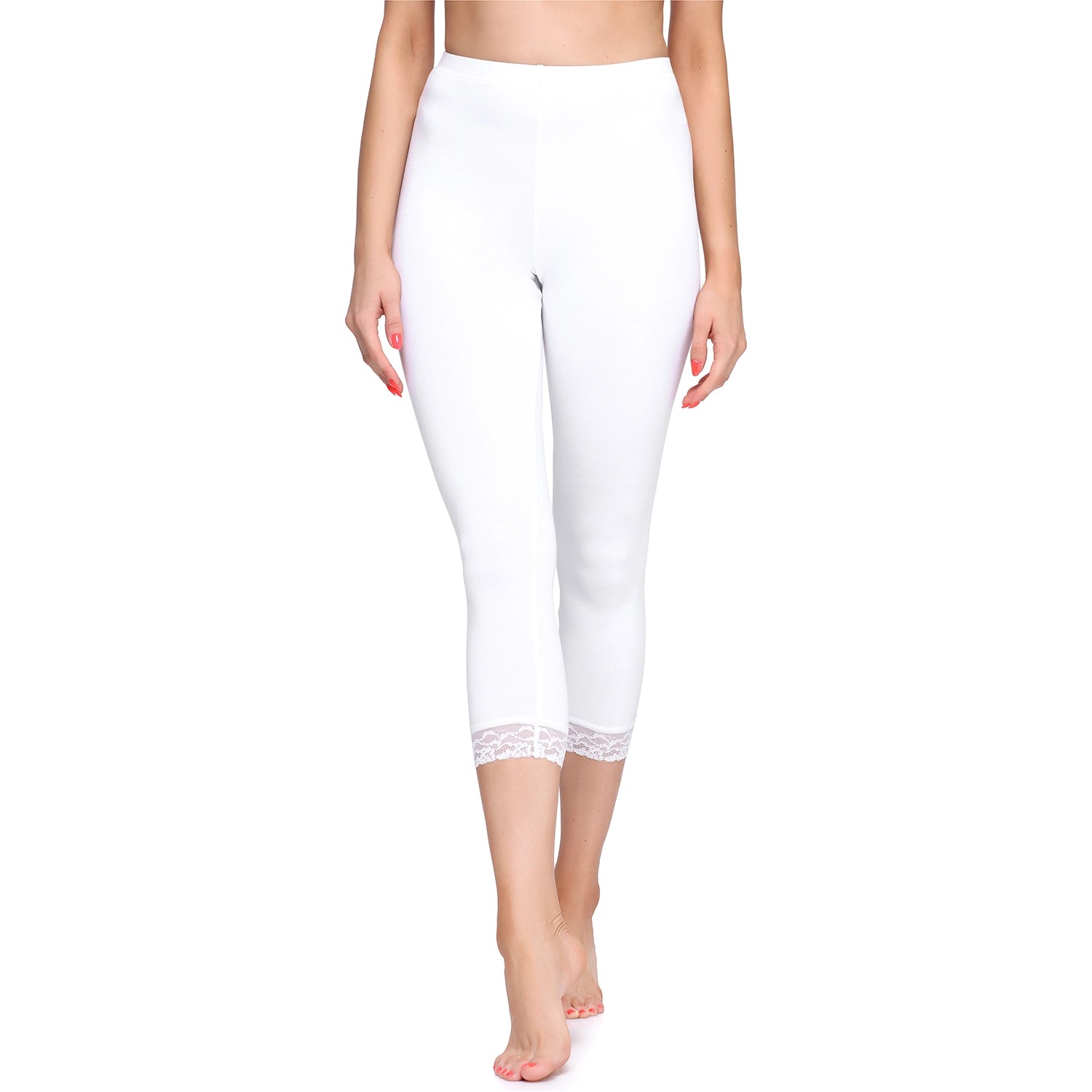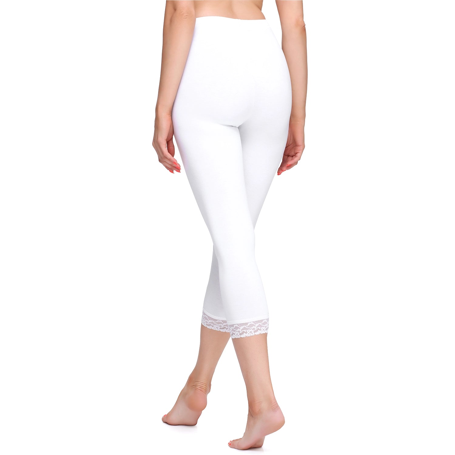 - In der EU hergestellt; Damen Leggings; 3/4 Länge; Capri Leggings; Hosenbeine mit eleganter Spitze verziert