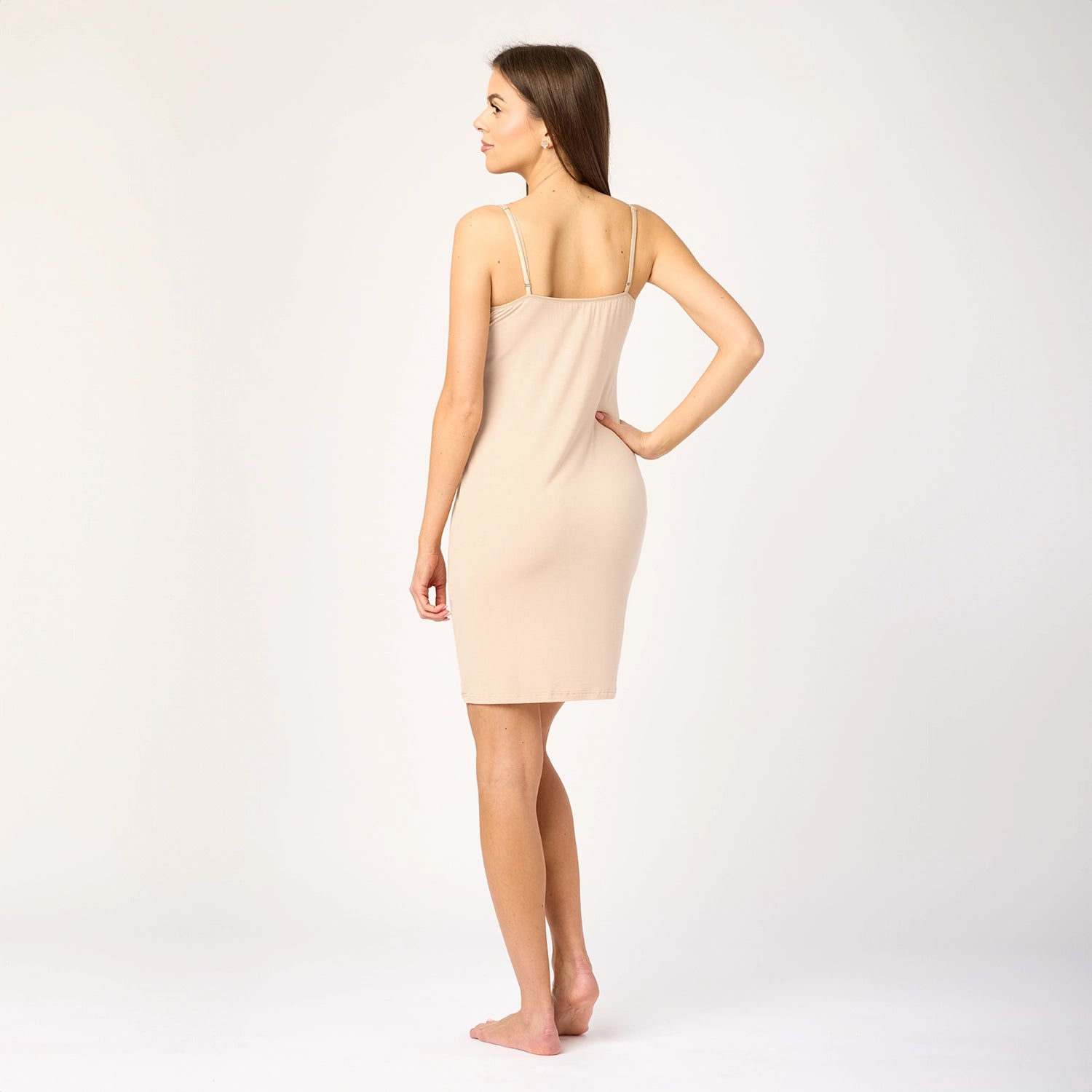 - Damen Unterkleid; Mit regulierbaren, elastischen Trägern; Der obere Rand wurde mit weichem, bequemem Gummi besetzt; Das Unterkleid ist leicht, elastisch und elektrisiert nicht