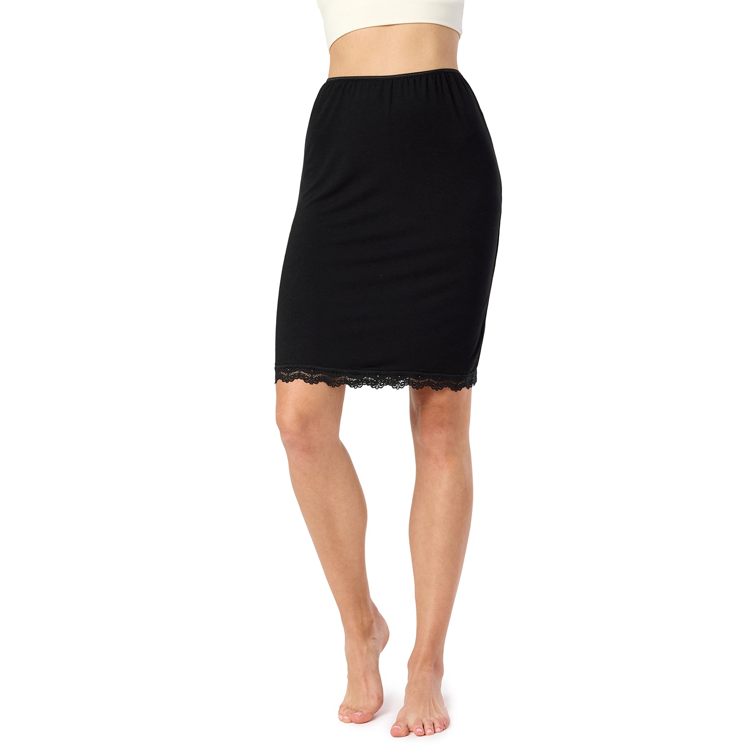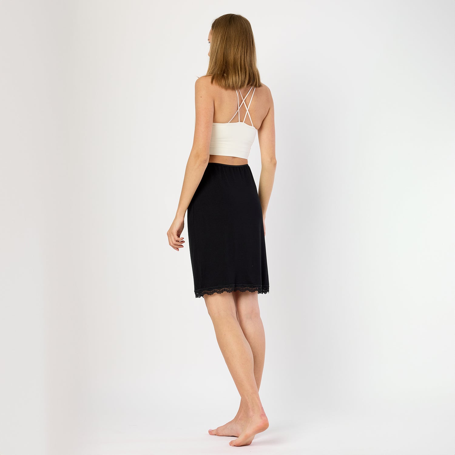 - Damen Unterrock aus Viskose; kurzer Unterrock, der unter dem Rock getragen werden kann; unterer Rand mit Spitze ausgefertigt; weiches Gummiband in der Taille, zwickt nicht; hergestellt in der EU