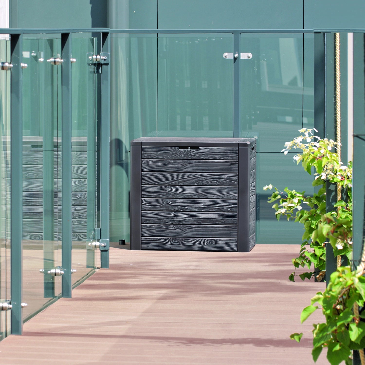Praktische Gartenbox / -truhe aus strapazierfähigem Material mit einer Oberfläche, die natürliche Holzbretter nachahmt. Auflagenbox findet Verwendung im Haus, auf dem Balkon, der Terrasse, im Garten oder in der Garage. Ihre Aufgabe ist es, die darin aufbewahrten Gegenstände vor Staub und Regen zu schützen. Die Box eignet sich zur Aufbewahrung von Werkzeugen, Gartenkissen, Gartenschläuchen, Spielzeug usw. Sie ist ästhetisch gestaltet, pflegeleicht und wartungsfrei, ohne dass eine Konservierung erforderlich ist, und sie ist wetterfest. Die robuste, langlebige und stabile Konstruktion gewährleistet eine lange und störungsfreie Nutzung. Die Box wird flach verpackt geliefert und erfordert eine Selbstmontage. Die Montage ist sehr einfach und erfordert keine Werkzeuge - alle Verbindungen sind steckbar. Nach dem Zusammenbau kann die Box nicht wieder auseinander genommen werden. Hinweis: Nicht auf die Box setzen! Äußere Abmessungen: Breite: 116 cm Höhe: 55 cm Länge: 43,8 cm