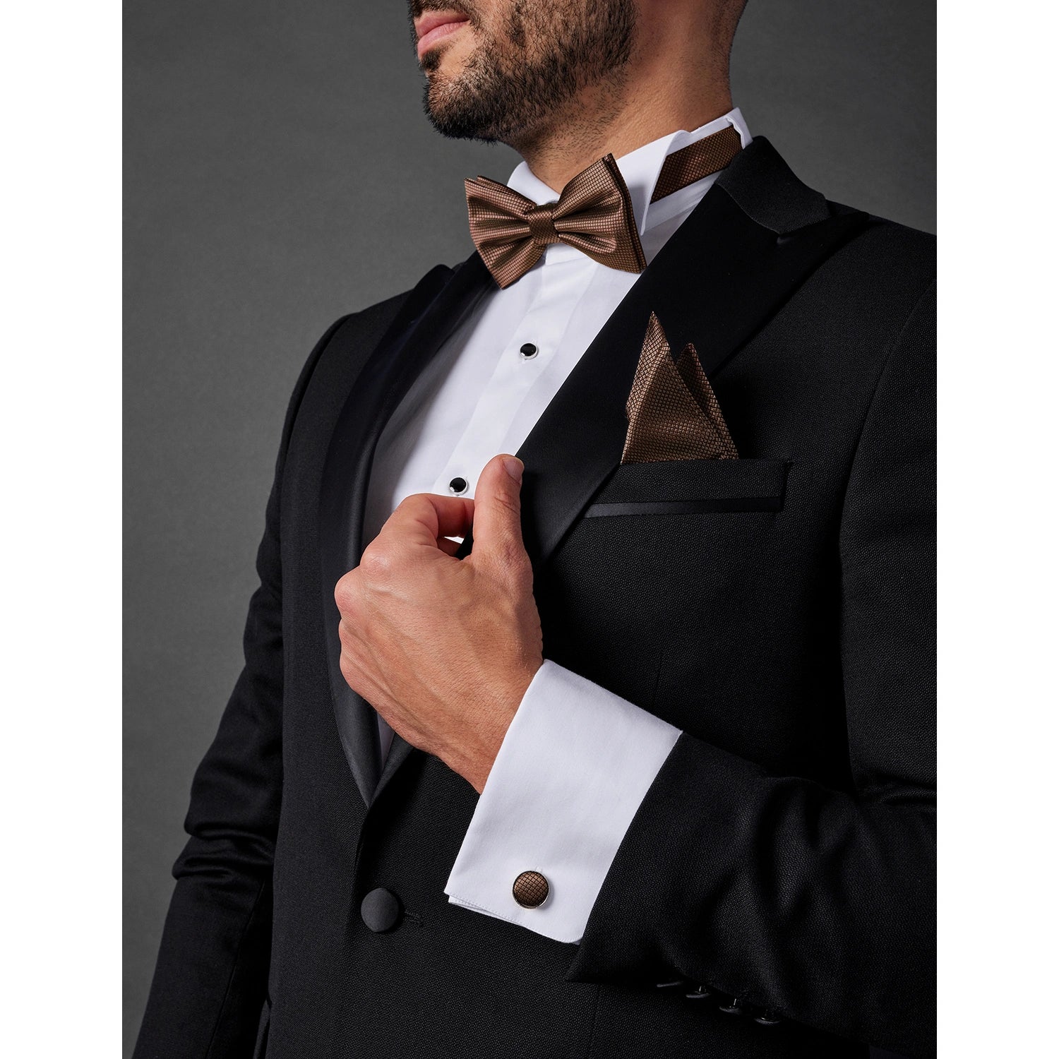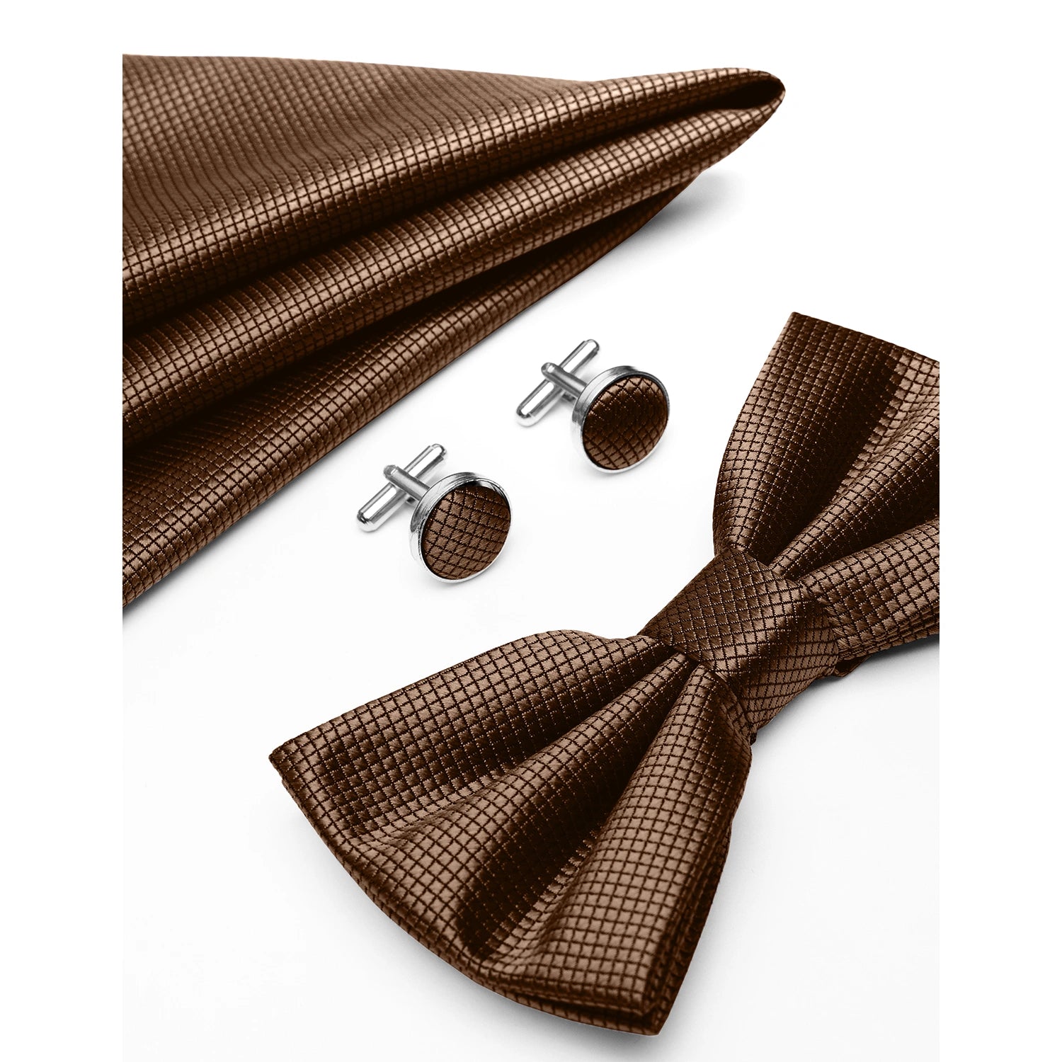 - Elegantes Set: Enthält eine hochwertige Fliege, ergänzt durch exklusive Manchettenknöpfe und ein passendes Einstecktuch. Für einen anspruchsvollen und zeitlosen Stil.