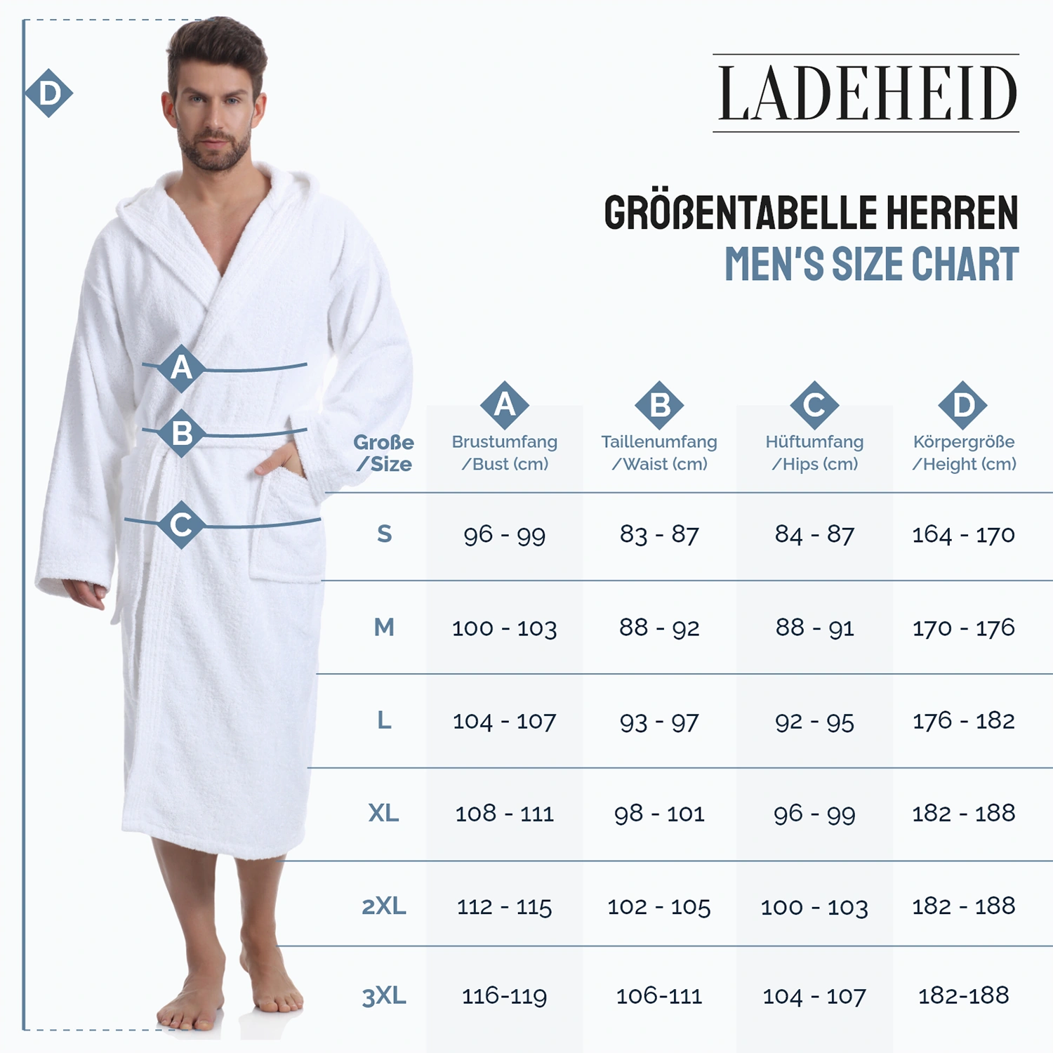 - Herren Bademantel aus Frottee; Klassischer, zeitloser Stil; Warm, saugfähig und sehr bequem