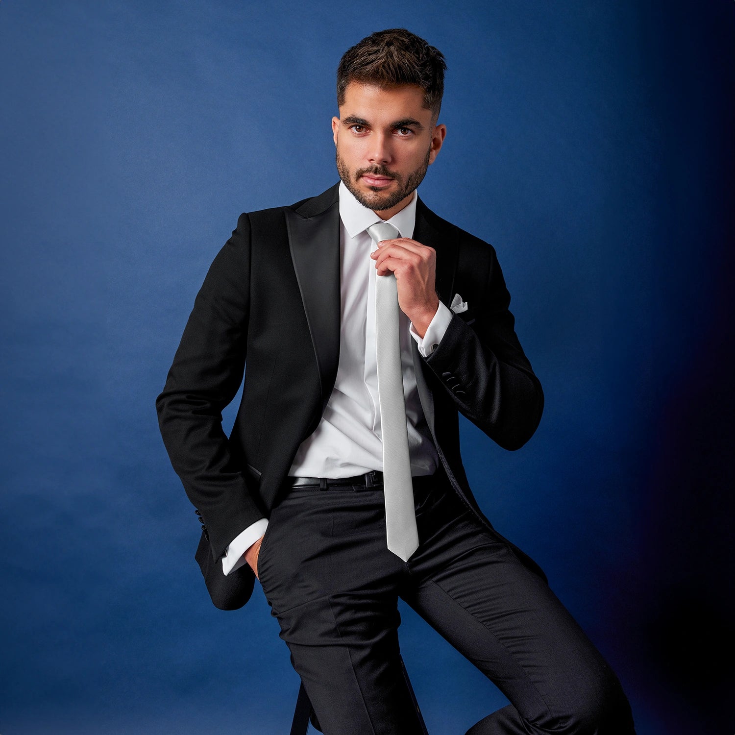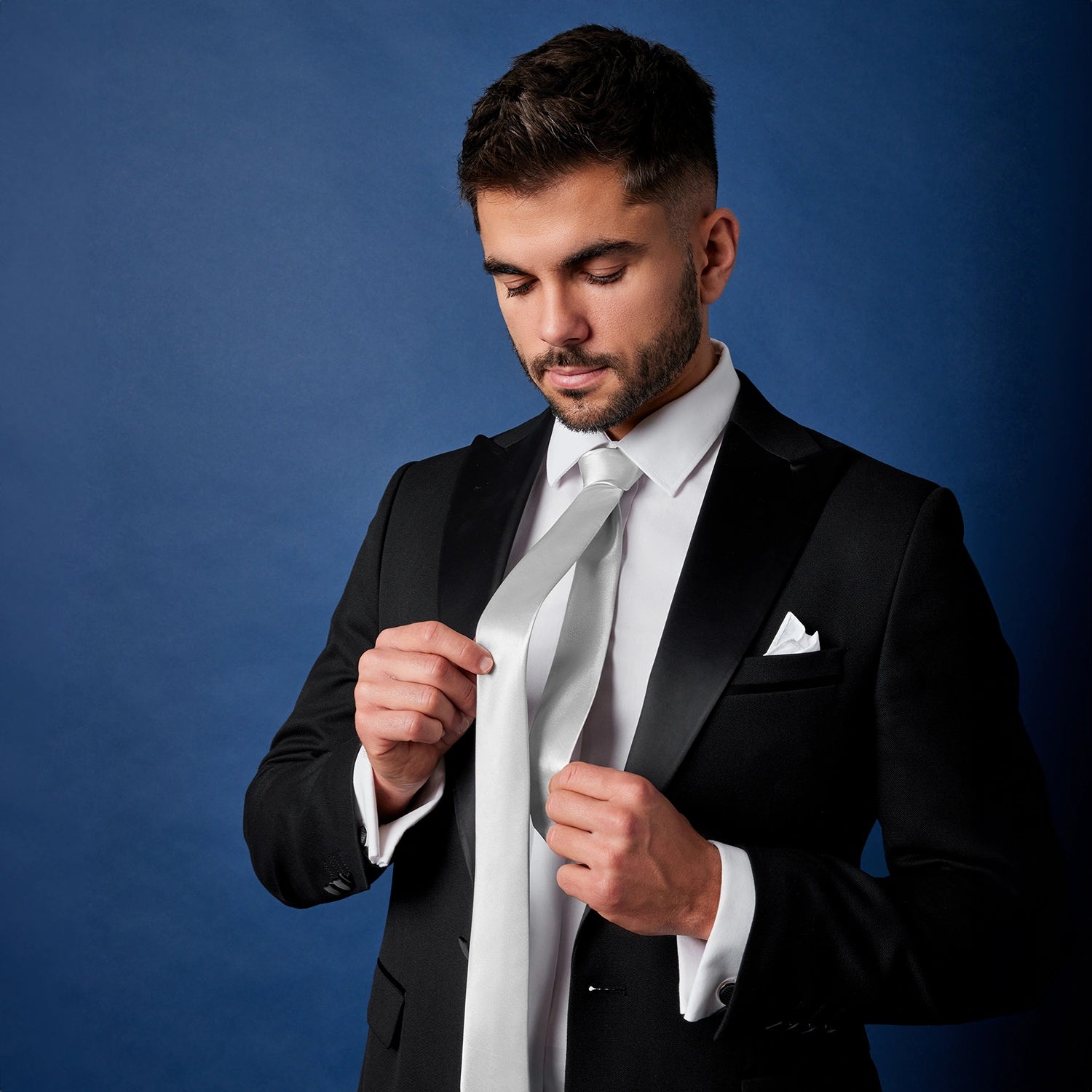 - Glänzende Krawatte: verschiedene Farben, weicher Stoff, einfaches Binden, passend zu Hemden.