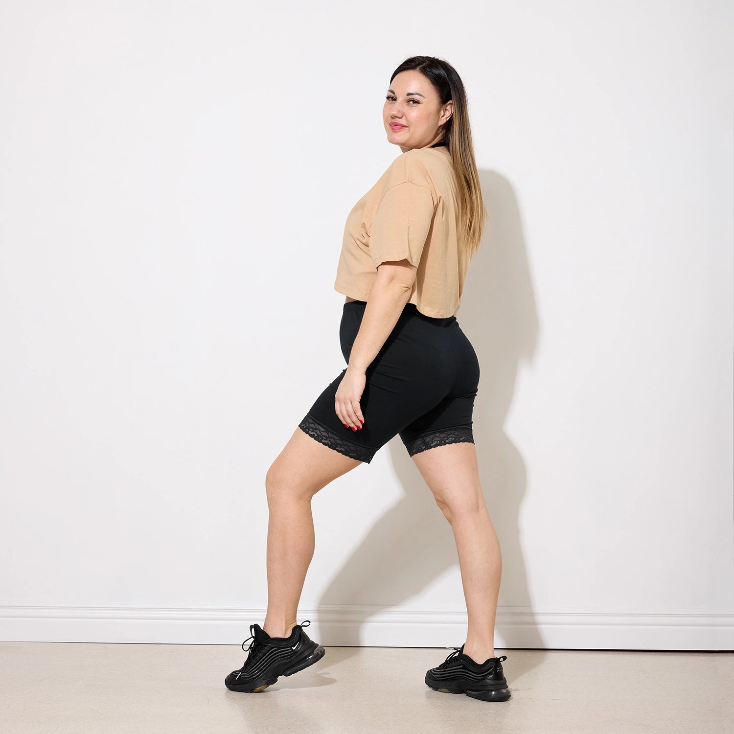 - Plus Size Kurze Damen Leggings aus Viskose; Mit dehnbar Spitze ausgefertigt; Hergestellt in der EU