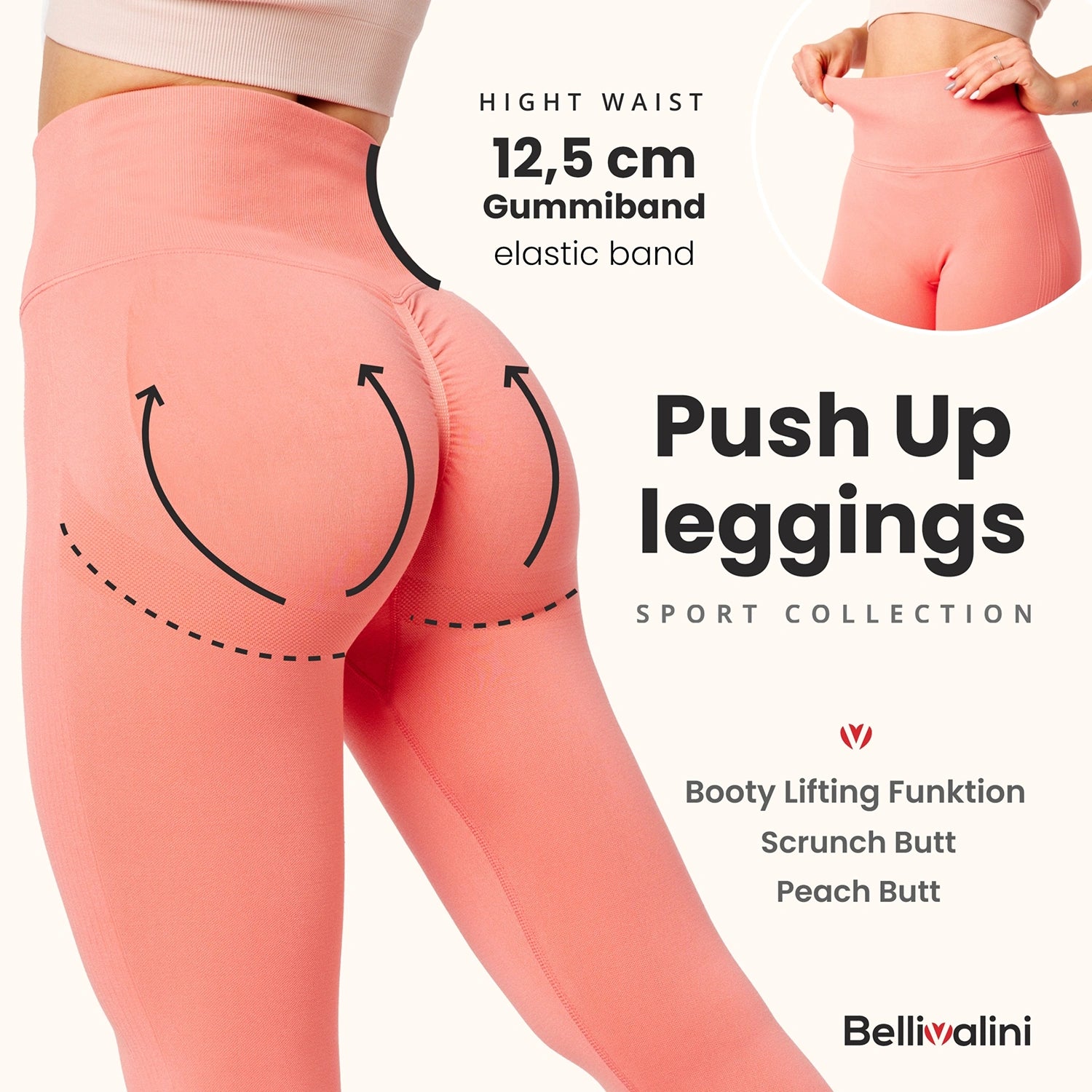 Möchten Sie während des Trainings gut aussehen und sich gut fühlen? Dann sind die Bellivalini Push Up Leggings Damen High Waist genau das, was Sie brauchen! Unsere sportleggins damen sind nicht nur stilvoll, sie sind auch funktional, perfekt für alle Arten von Activewear für Damen. Von Yoga bis Gymnastik, von Laufen bis Fitnessstudio, diese leggins sport damen sind Ihre treuen Begleiter. Mit der Scrunch-Leggings-Technologie erhöhen unsere boom booty leggings Ihr Training auf die nächste Stufe. Sie bieten eine fantastische Passform - das High Waist Design unterstützt Ihren Bauch, formt Ihre Figur und sorgt für Kompression und Halt, wo Sie ihn brauchen. Die Leggings sind nicht durchsichtig, so dass Sie sich keine Sorgen machen müssen, dass etwas durchscheint. Das hochwertige, weiche Material ist super dehnbar und hautfreundlich, sorgt für Bewegungsfreiheit und Komfort, egal wie intensiv Ihr Training ist. Mit starkem Kompressionsdesign formen unsere Leggings Ihren Booty zum perfekten -Pfirsichform. Unsere gym leggings damen kommen in vielen Farben und Größen von S bis XXL, so dass jede Frau die perfekte Passform finden kann. Egal ob Sie eine Yogahose damen oder eine Sporthose damen lang suchen, unsere Leggings sind vielseitig einsetzbar. Sie sind auch ideal als Kompressionsleggins damen für Erholung nach dem Training. Mit diesen Leggings sehen Sie nicht nur sexy und charmant aus, sondern fühlen sich auch so. Probieren Sie unsere push up leggings und erleben Sie den Unterschied. Bellivalini - weil wir wissen, was Frauen wollen!