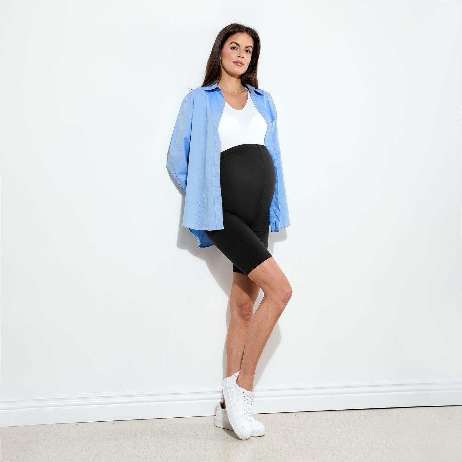 - Kurze Umstandsleggings; Hoher Bund; So geschnitten, um sich dem wachsenden Babybauch anzupassen