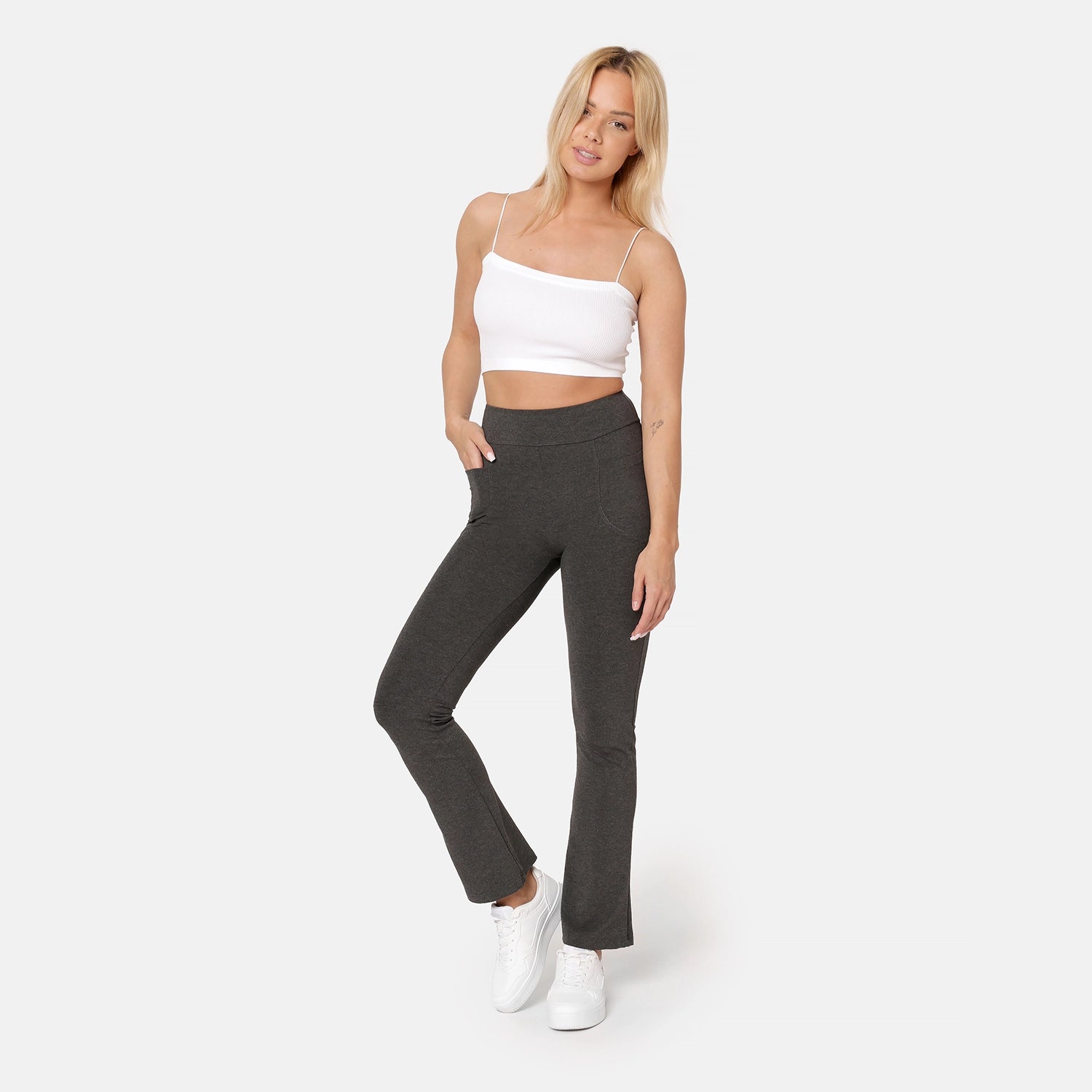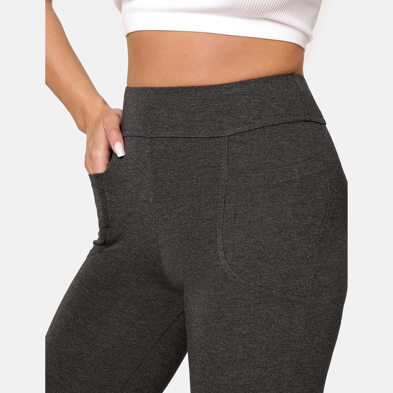 - Die Yogahose hat zwei Taschen und einen breiten, elastischen Bund, der nicht einschnürt oder drückt.