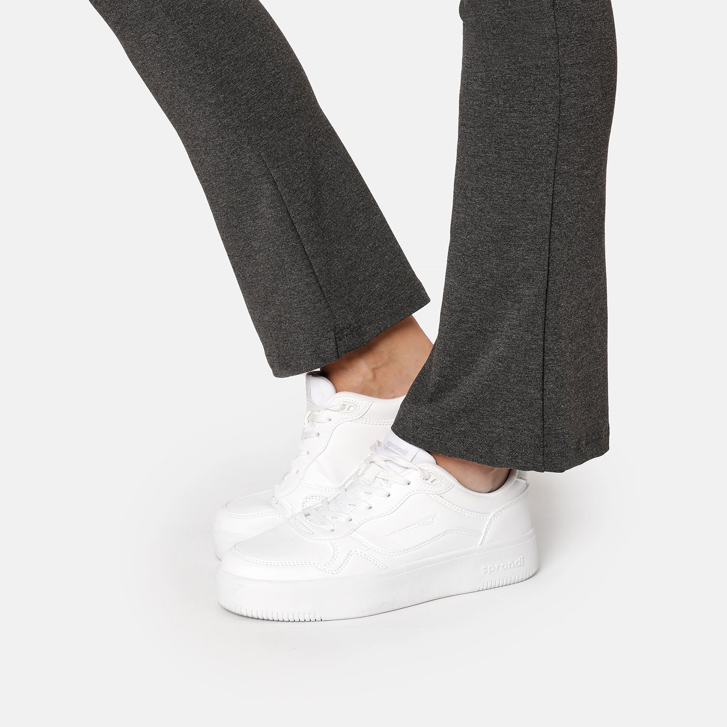 Diese bequeme Hose für Damen wird sicherlich Ihre bevorzugte Wahl während des Trainings zu Hause und im Freien sein. Sie ist auch eine Alternative für tägliche Spaziergänge mit dem Hund oder zum Spielen mit den Kindern. Sie hat lange, ausgestellte Beine, die Bewegungsfreiheit ermöglichen und ihr einen stilvollen Charakter verleihen. Außerdem hat die Hose zwei praktische Taschen, in denen Sie während des Trainings kleine Gegenstände aufbewahren können. Dank der Vielfalt an verfügbaren Farben und Größen werden Sie mühelos das ideale Modell finden, das Ihren Vorlieben entspricht. Das Material besteht zu 94 % aus Viskose und zu 6 % aus Elasthan, was die Hose nicht nur bequem, sondern auch atmungsaktiv und flexibel macht. Diese Stoffhose wird nicht nur eine ausgezeichnete Wahl für Yoga sein, sondern auch für das Tragen an warmen Sommertagen, während der Arbeit, für Aktivitäten im Freien oder zum Entspannen zu Hause als Freizeithose. Ihre leichte Konstruktion und das atmungsaktive Material bieten auch bei intensiven körperlichen Aktivitäten wie Yoga, Pilates oder im Fitnessstudio Komfort. Hergestellt aus weichem Material, absorbiert die Hose aus Viskose Feuchtigkeit schnell und lässt sie verdampfen, was dazu beiträgt, dass Ihre Haut trocken und komfortabel bleibt. Darüber hinaus ist das Material undurchsichtig, sodass Sie sich bei jeder Yoga-Position sicher und frei fühlen können. Die weite Hose passt perfekt an die Taille und Hüften, und der elastische Bund drückt oder schnürt nicht ein, was einen hohen Tragekomfort gewährleistet. Ihr bequemer Schnitt macht sie ideal für den ganzen Tag, sowohl während körperlicher Aktivitäten als auch zur Entspannung. Diese Damen Yogahose bietet Ihnen nicht nur Komfort und Bewegungsfreiheit, sondern ermöglicht es Ihnen auch, Ihren eigenen, einzigartigen Stil auszudrücken.